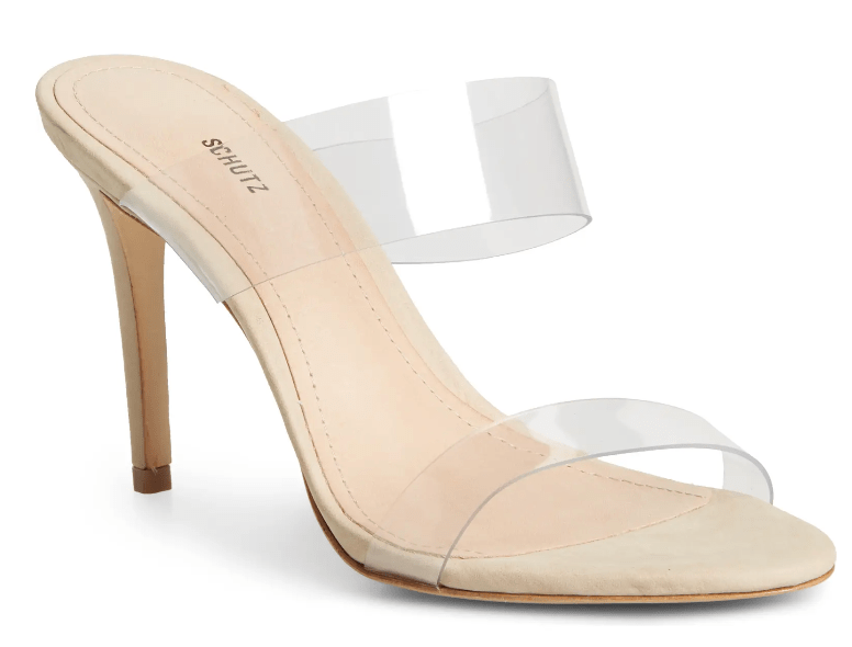 Schutz Ariella Mules – The heels that go with (almost) everything! They’re like Cinderella’s glass slipper emulating a “barely there” look. The plastic is flexible, so they’re really quite comfortable! I’ve worn these for hours at a time and can dance in them, too!