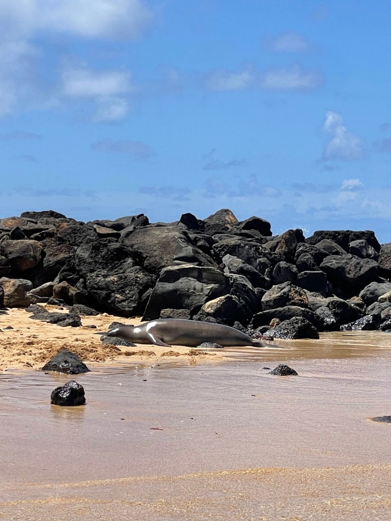 First, I got a massage at the resort’s spa. To be honest, it wasn’t the most luxurious spa I’ve been to, but my masseuse was very good and I felt relaxed afterward. Then, we headed to Poipu which has a great beach for kids where you can swim and snorkel in shallow lagoons. There’s also lifeguards! This was an incredible experience for the kids, because we got to see three large sea turtles on the beach and one swam right next to us! We got to see some seals swimming next to us, too. It was really cool to be so close to nature!