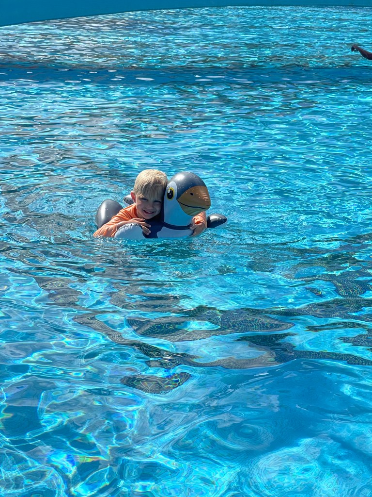 Our flight was scheduled to leave at 1:10 p.m., and since we were located close to the airport, we had a little bit of time in the morning to enjoy the resort one last time. I got up really early to be the first one on the beach and in the ocean as the sun was rising, and it was magical. I had only been to the beach with the kids (which we all know isn’t so “relaxing”), so it was really special to have a peaceful swim out by myself and look back at the island. When I came back to the hotel room, my husband had the kids dressed to go swimming at the pool one last time.