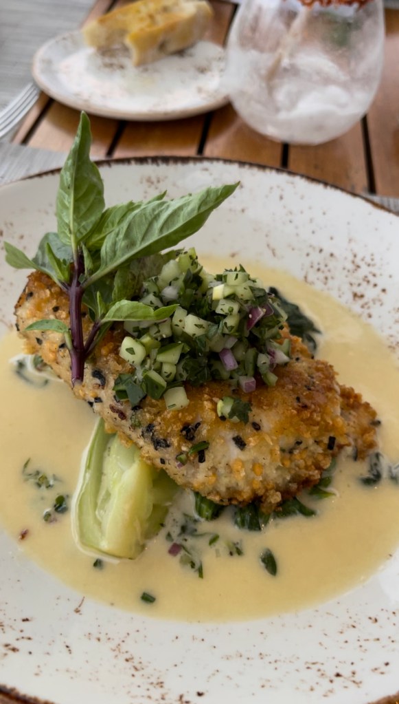 For dinner, we went to Hualani’s at Timbers Ocean Club & Residences, which was one of the very best meals we had in Kauai! The view on a cliff overlooking the ocean and a lighthouse is breathtaking, the ambiance with live music is so pleasant, and the food is top-notch. The restaurant uses ingredients predominately sourced from local farmers and purveyors, so everything is fresh, and it was all cooked to perfection. They had a special mango and prosciutto appetizer on the menu that night, and it was the best mango I’ve ever had in my life! So fresh, soft and sweet! I need to note that Hualani’s is a bit more upscale, but they were very welcoming to our children. If we do go to a fancy as a family, we always try to dine on the earlier side and bring lots of activities to entertain our children while waiting for our food. Luckily, there was a spacious lawn area where our children were able to get some of their wiggles out before dinner arrived. We 10/10 recommend this restaurant if you can get a reservation!