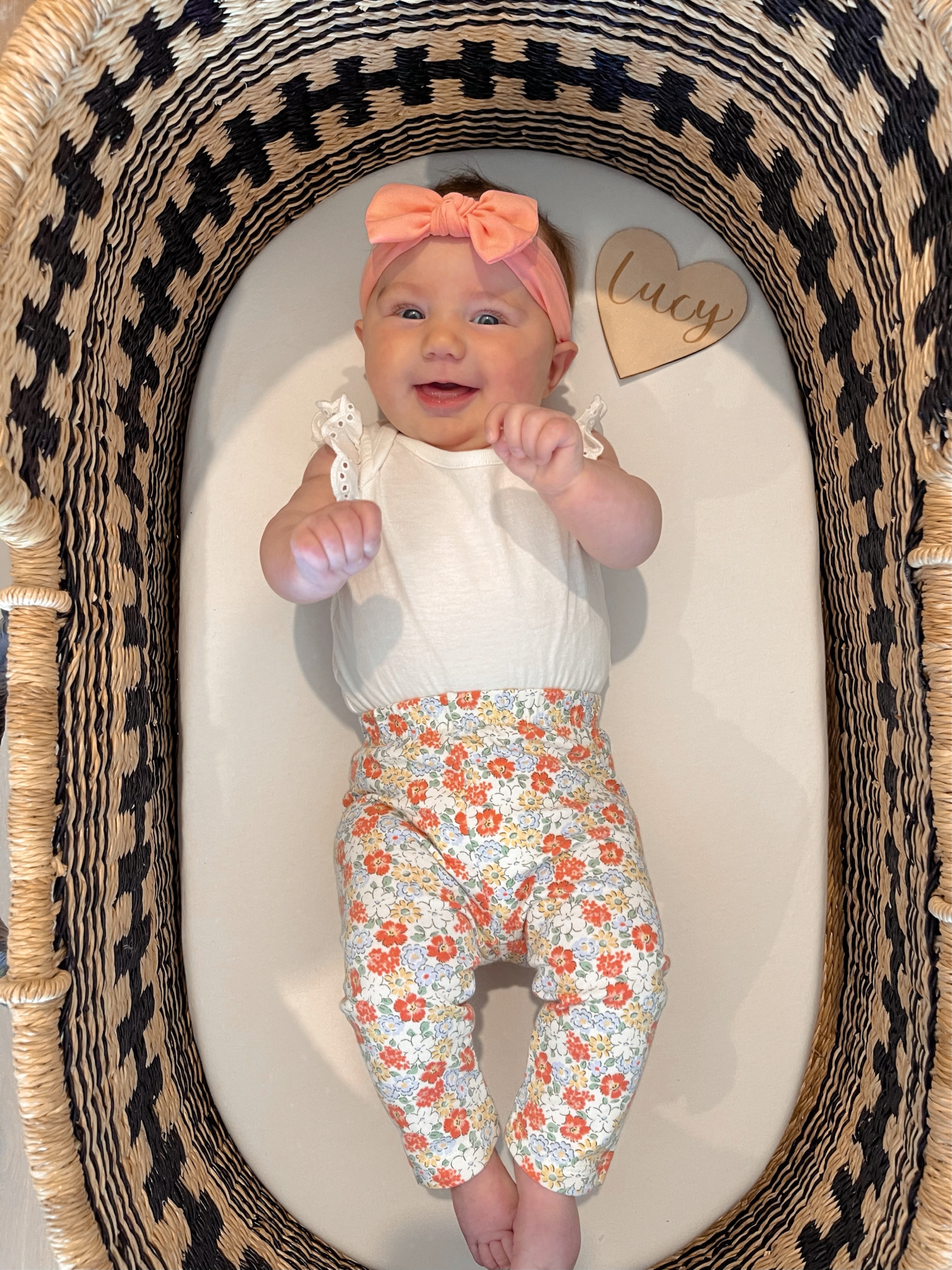My first baby hated being swaddled, but maybe that’s because we never tried the Love to Dream swaddle, which leaves their arms in the natural up position. Lucy would calm down immediately when putting her in this swaddle. I also bought the next version up where you can remove the arms for when baby starts rolling. My first baby woke up every couple of hours, but Lucy has done 8 hours straight in the Love to Dream swaddle! Plus, I love how babies look like super cute little burritos in it!