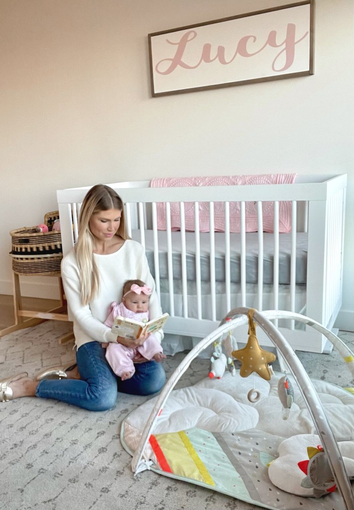 Lucy’s now spending nights and naps in her crib, and I love the Babyletto Hudson Crib because it’s so aesthetically pleasing to the eye – it’s perfect for our modern home decor! It’s also Greenguard Gold Certified and made with sustainably sourced wood (who doesn’t desire more clean products, especially for baby?!). We used the same crib for Landon for 2 years and will use it for Lucy even longer, because we’ll convert it to a toddler bed when she’s ready.