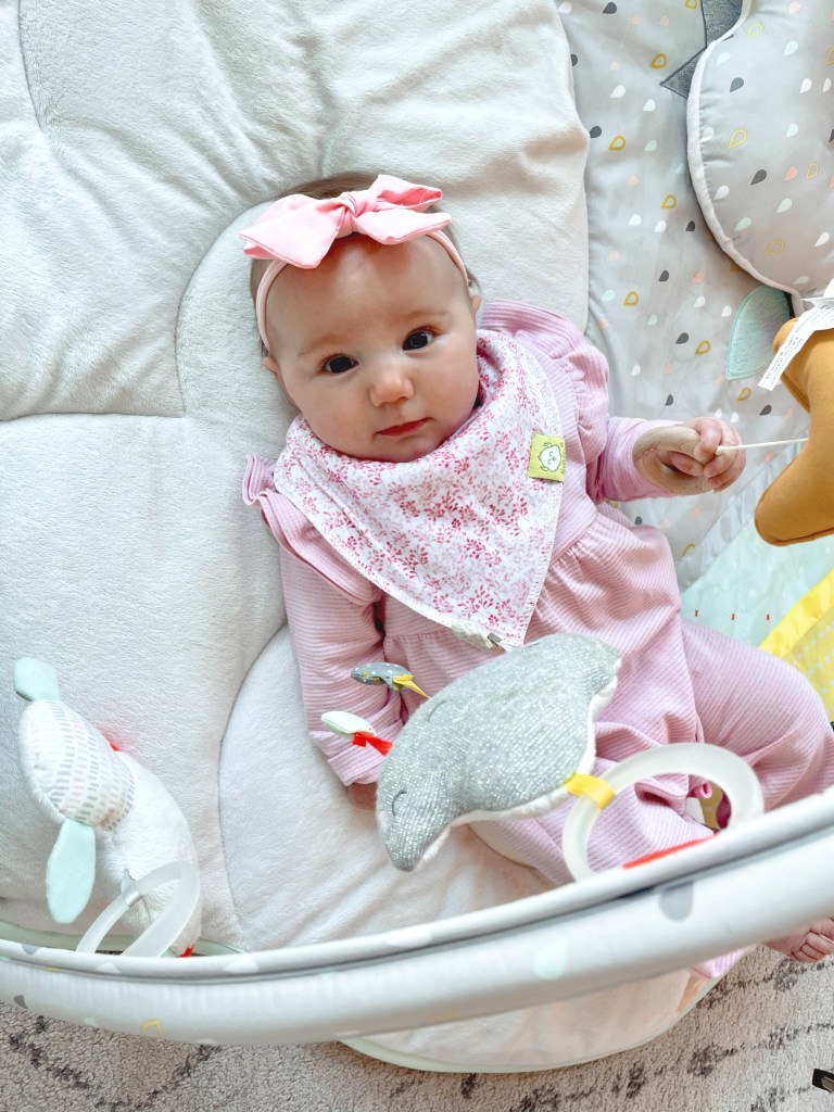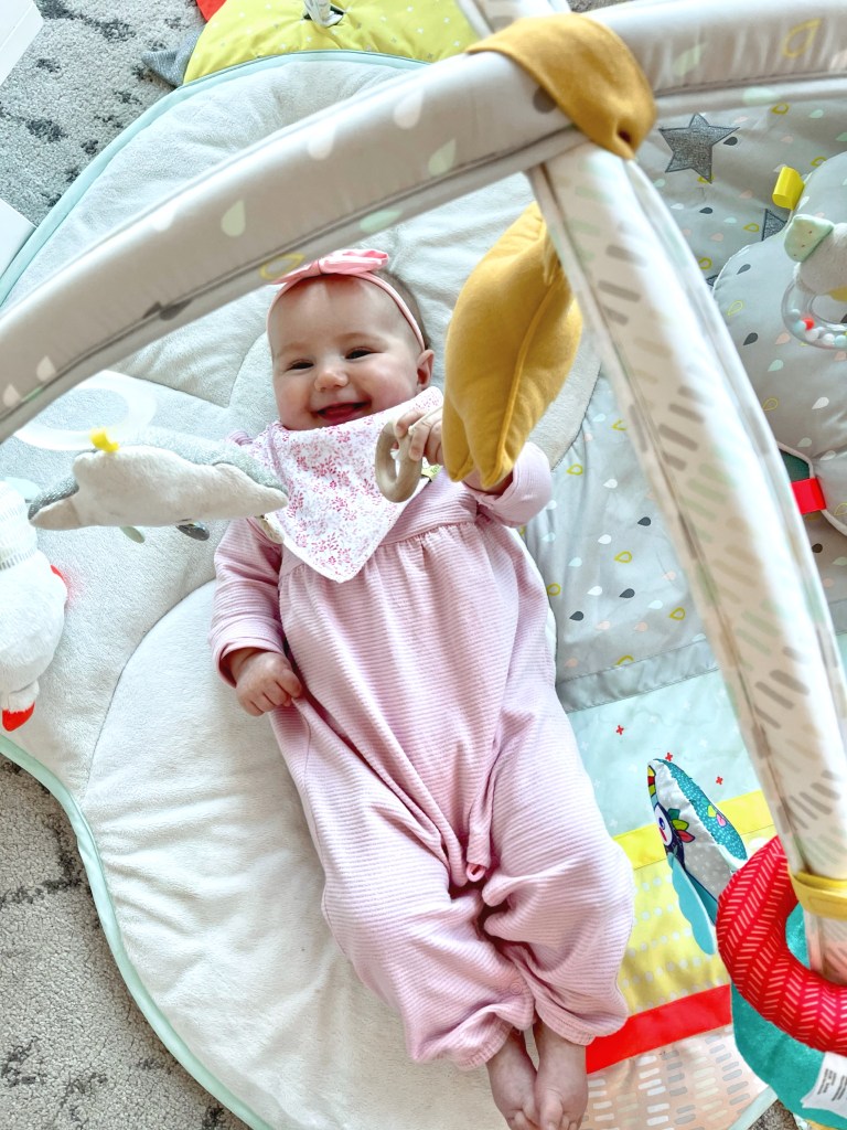 Wow, we’ve moved past the newborn stage already! Lucy is changing so much every week! With all the recent baby changes, we’ve also had to make some changes to the products and toys we’re regularly using. Below, I’ve listed all of our favorite products we’re currently using – everything from nap time to playtime!