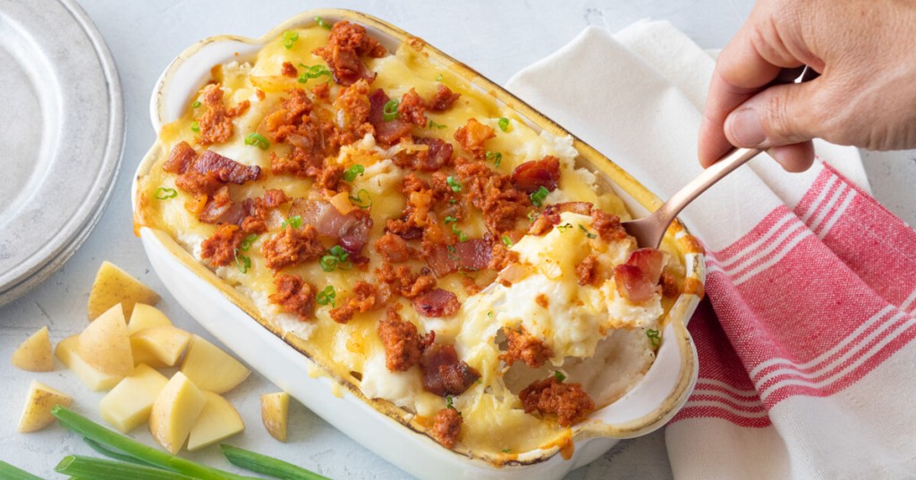 What kid doesn’t love mashed potatoes? Make this elevated version of mashed potatoes using Cacique Oaxaca Cheese, Crema Mexicana, Pork Chorizo and bacon for a side dish that the whole family will love! Cacique brand makes my favorite hispanic foods, including their high-quality, authentic Oaxaca Cheese which has a mellow, earthy flavor with a superior melt. It’s the perfect cheese to add a special spark to your favorite dishes like classic mashed potatoes. My children love helping sprinkle the shredded Cacique Oaxaca Cheese as the final touch on the casserole, and my 4-year-old is great at mashing potatoes! Another thing that’s fabulous about this mashed potatoes recipe is that you can assemble it the day before Thanksgiving, then pop it in the oven for 30 minutes when you’re ready to serve. This makes the day easier to enjoy relaxing and visiting with family instead of stressing out in the kitchen. For more information about Cacique, including mouth-watering recipes made with authentic ingredients, head to www.CaciqueFoods.com. You can find this Make Ahead Creamy Mashed Potatoes recipe here.