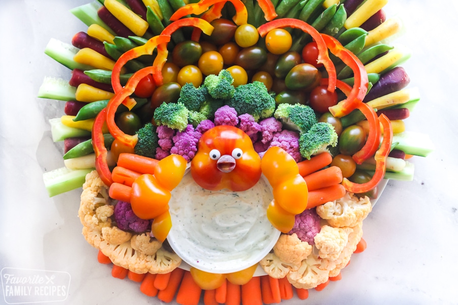 The best way to get my kids to eat veggies is to introduce them first and make it fun! A veggie plate appetizer shaped like a turkey is sure to get your kids interested! Arrange cucumbers, carrots and celery for the turkey feathers and use bell peppers to create turkey wings and face. I like to pair veggies with my favorite Healthy Veggie Dip, which is so easy to make! Go to Favorite Family Recipes for tips on how to create the veggie turkey here.