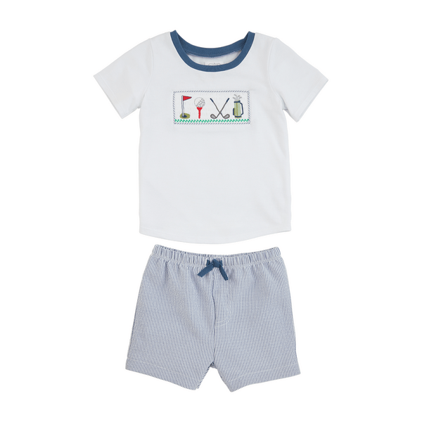 My 5-year-old son is doing his first golf camp this summer and he’s so excited to be on the course like his golf-loving dad. Whether your child is on the greens or not, the whole family will love Mud Pie’s precious golf themed outfits for kids – everything from a short set, t-shirt set, t-shirt jersey dress, bodysuit, sleeper set and swimsuit. Below are some of my personal favorite Mud Pie outfits for your kids to wear around the pro shop this summer!
