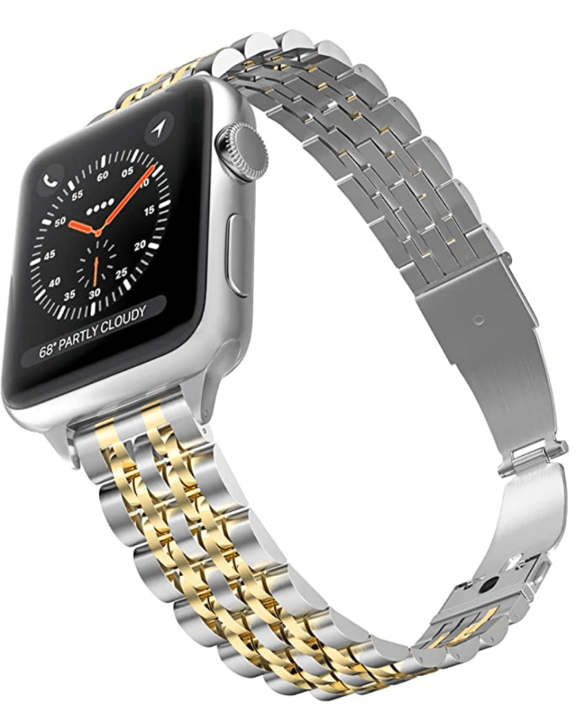 As I started examining how I could optimize my fitness this year, I realized that I wasn’t doing any sort of tracking to truly understand how I could make it better. Enter the Apple Watch Series 7. Yes, I know I’m late to the Apple Watch game, but that’s because I never had a reason to have one… In fact, I didn’t want one, and I actually thought it would make my life worse! I’m too connected to my iPhone as it is – I don’t need another Apple device on my wrist!! But, here’s the truth: I’m less connected to my iPhone now because of my Apple Watch! When I’m with my children, I now leave my phone in the other room and can be PRESENT without the lure of opening a social media app or browsing the internet. If I receive an urgent call or text message, I’ll receive it on my wrist, but I often decide to respond to it later. I love the activity app on my Apple Watch that tracks my movement, exercise and standing. It’s my goal every day to close my “activity rings” by doing enough movement to burn 310 calories, exercise for at least 30 minutes, and stand for at least a minute each hour. It’s very motivating to see my daily progress and try to move more to close my rings. I also love that the Apple Watch tracks my heart rate. Heart disease runs in my family, so I believe it’s super important to be aware of your resting and active heart rates. I honestly like the band that my watch came with – I chose the Starlight color. But, when I don’t want it to look like I’m wearing a fitness tracker, I switch out my band for this pretty two-tone stainless steel band that’s super affordable on Amazon.
