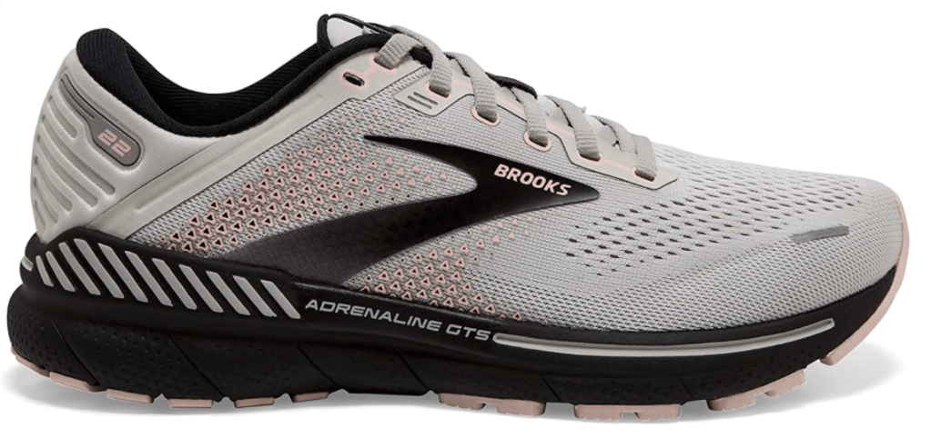 Running is my preferred method of cardio, and I’m embarrassed to admit that I’m way behind on updating my running shoes! Experts recommend changing running shoes every 300-500 miles. Of all the running shoes I’ve tried, Brooks brand has consistently been the best running shoe for me and for many other runners. Brooks are like the Heinz Ketchup of distance running shoes. Every bada** long-distance runner loves them! For me, it’s the Brooks Adrenaline GTS 22 that does the job… WOW, they are comfortable and offer lots of support! I have thin feet and a high arch, and these shoes protect me from getting plantar fasciitis while also adding extra support for my knees and hips. Adding these new shoes will make my runs longer, more comfortable and injury-free. I recently purchased the shoes in the Grey/Rose/Black color combo (below). I like the neutral colors with the subtle girly nod with the pink accents!